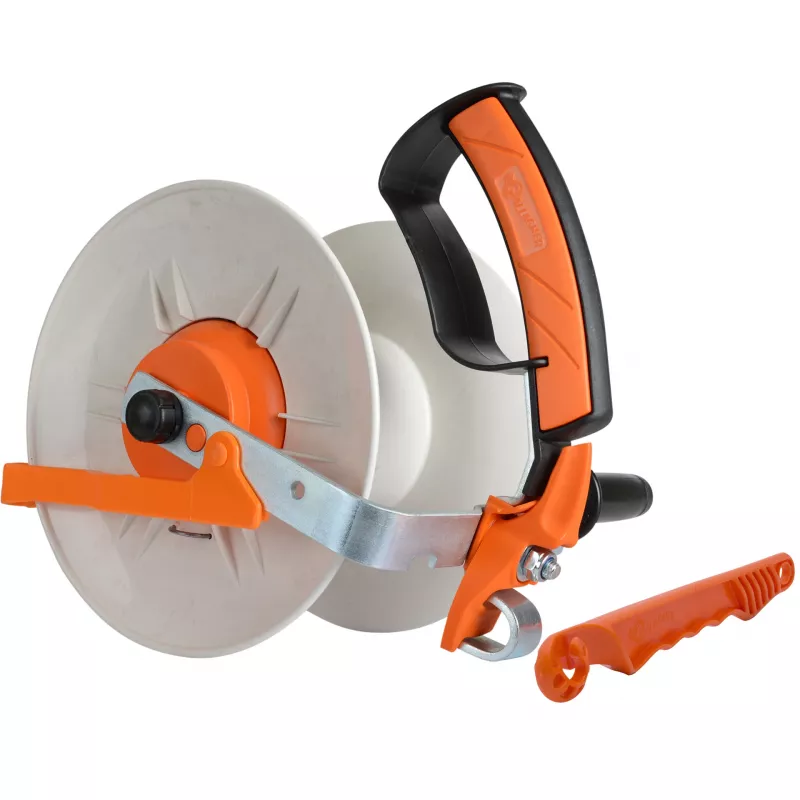 Solide enrouleur avec un très grand diamètre intérieur permettant un rembobinage rapide. Conçu pour du fil synthétique ou du ruban jusqu’à 500 mètres maximum. Peut être fixé aux piquets de montage en utilisant le crochet 022014/022236. Avec démultiplicateur grâce auquel il tourne 3x plus vite.