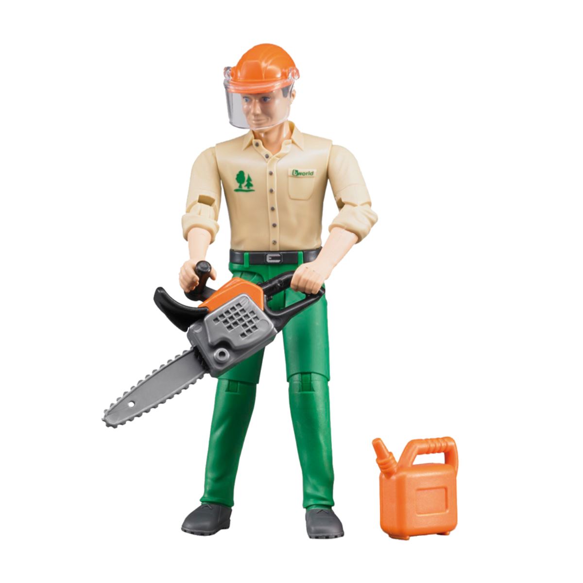 La vaste gamme de produits de BRUDER contient de nombreux tracteurs, remorques et machines d’exploitation forestière. Pour la compléter à la perfection, elle propose des figurines qui apportent encore plus de plaisir et de réalisme dans le paysage ludique. Équipé, à titre de sûreté, d’un casque avec visière, il peut commencer le travail directement. De plus, le kit contient une tronçonneuse et un jerrycan afin de rejouer de manière aussi réaliste que possible le quotidien d’un travailleur forestier. La tête de l’ouvrier, ainsi que ses bras et ses jambes, sont mobiles et sa tenue est en parfaite adéquation avec le thème. Attention! Ne convient pas aux enfants de moins de 3 ans. Echelle: 1:16 Marque: BRUDER